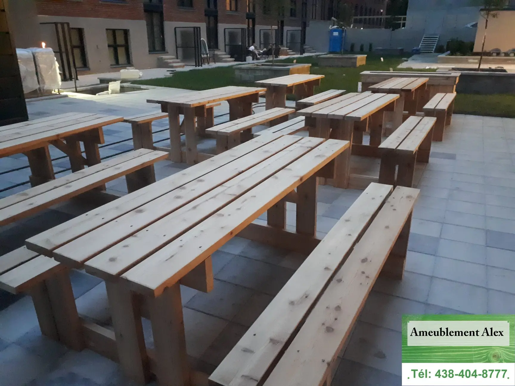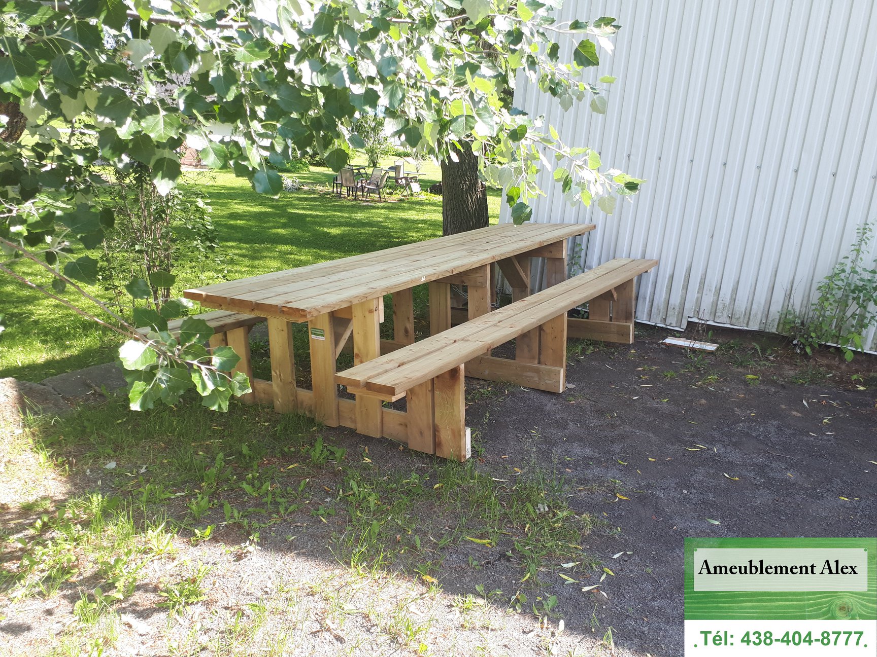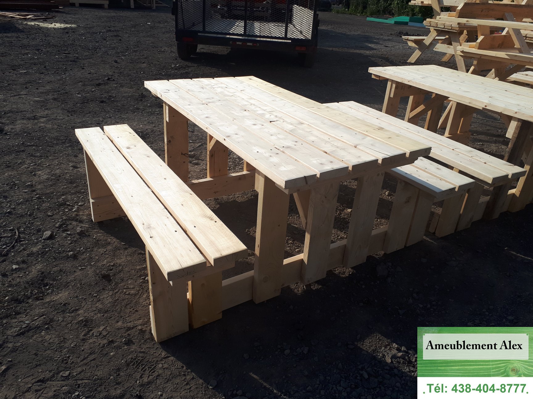 (toutes les tables parc ont 65 pouces banc à banc, plate-forme 30 pouces banc doublé 2×6)